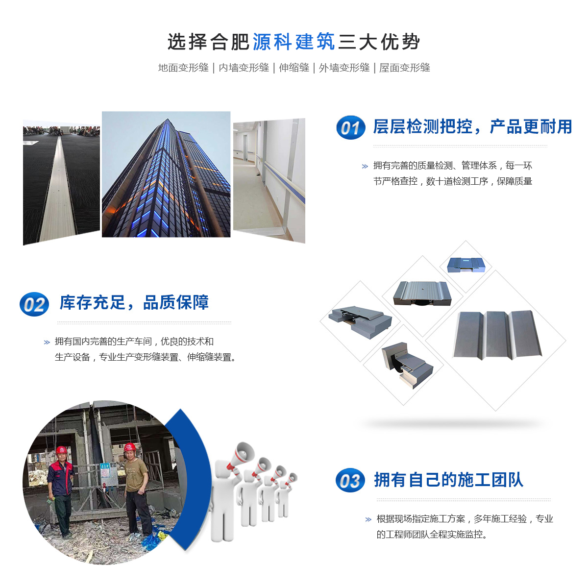 合肥源科建筑科技有限公司位于長三角城市群副中心的合肥,面向國內(nèi)外生產(chǎn)銷售是專業(yè)研發(fā)及產(chǎn)銷各種建筑伸縮縫、地面變形縫、內(nèi)外...